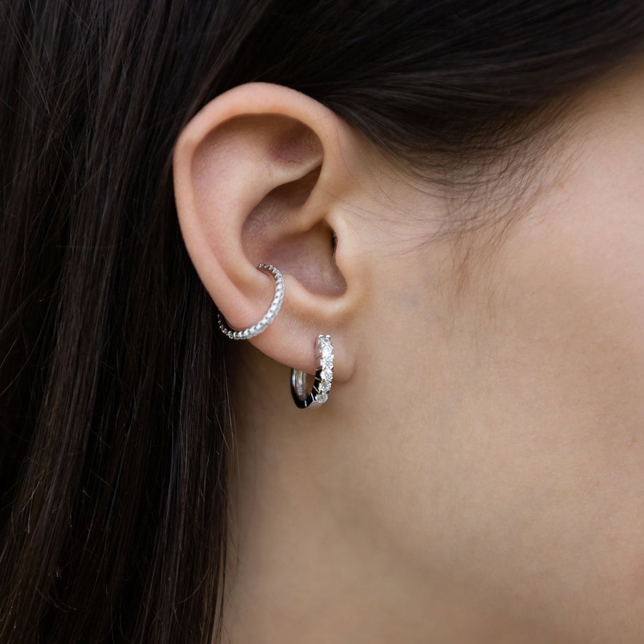 Beautiful by themselves or stacked with other earrings such as the silver pavé ear cuff (as shown in the image gallery), these huggie earrings will add a touch of sparkle day or night. Perfect for the Christmas season.
