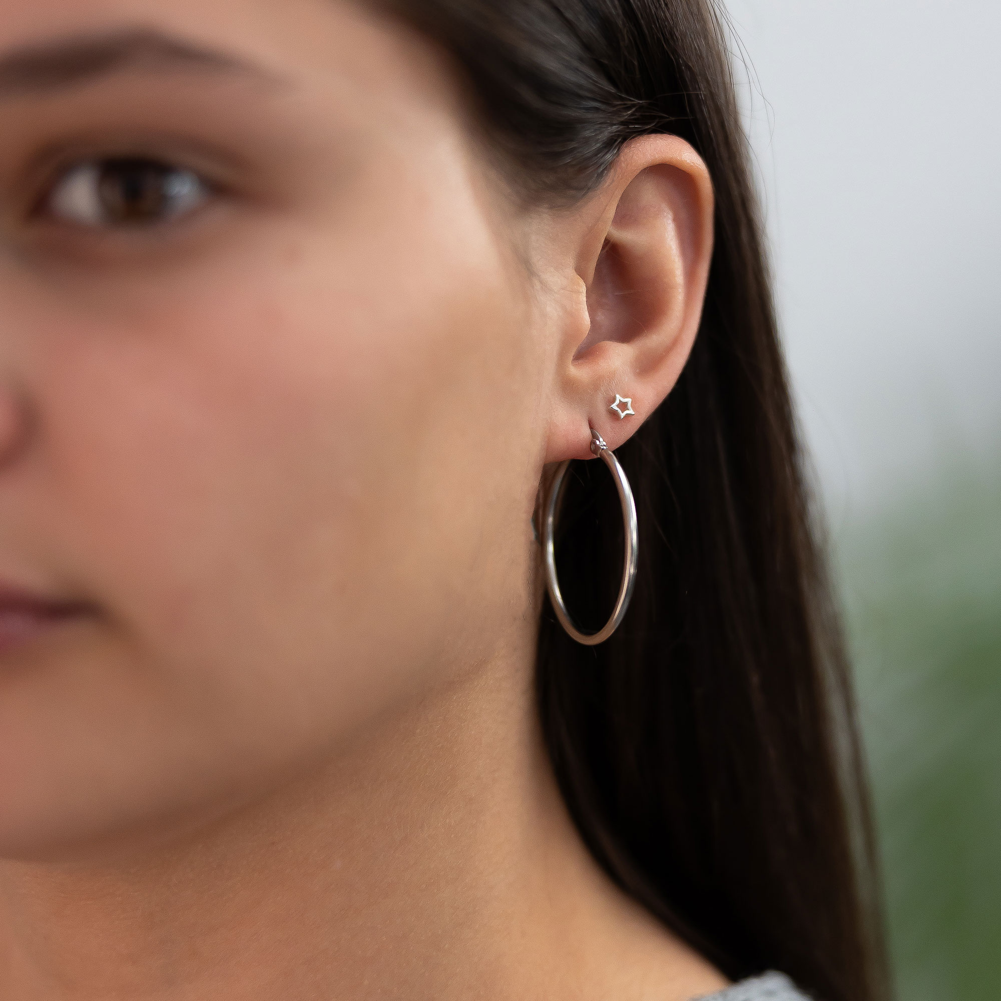 A classic pair of silver-tone hoops. Not too thin, not too thick, just right!