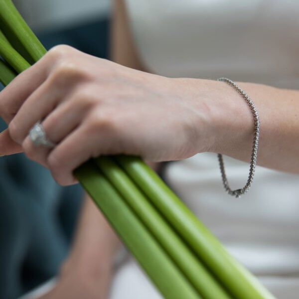 Created from sterling silver and high-grade cubic zirconias, the bracelet is 20 cm from end to end and it fastens securely with a safety catch.