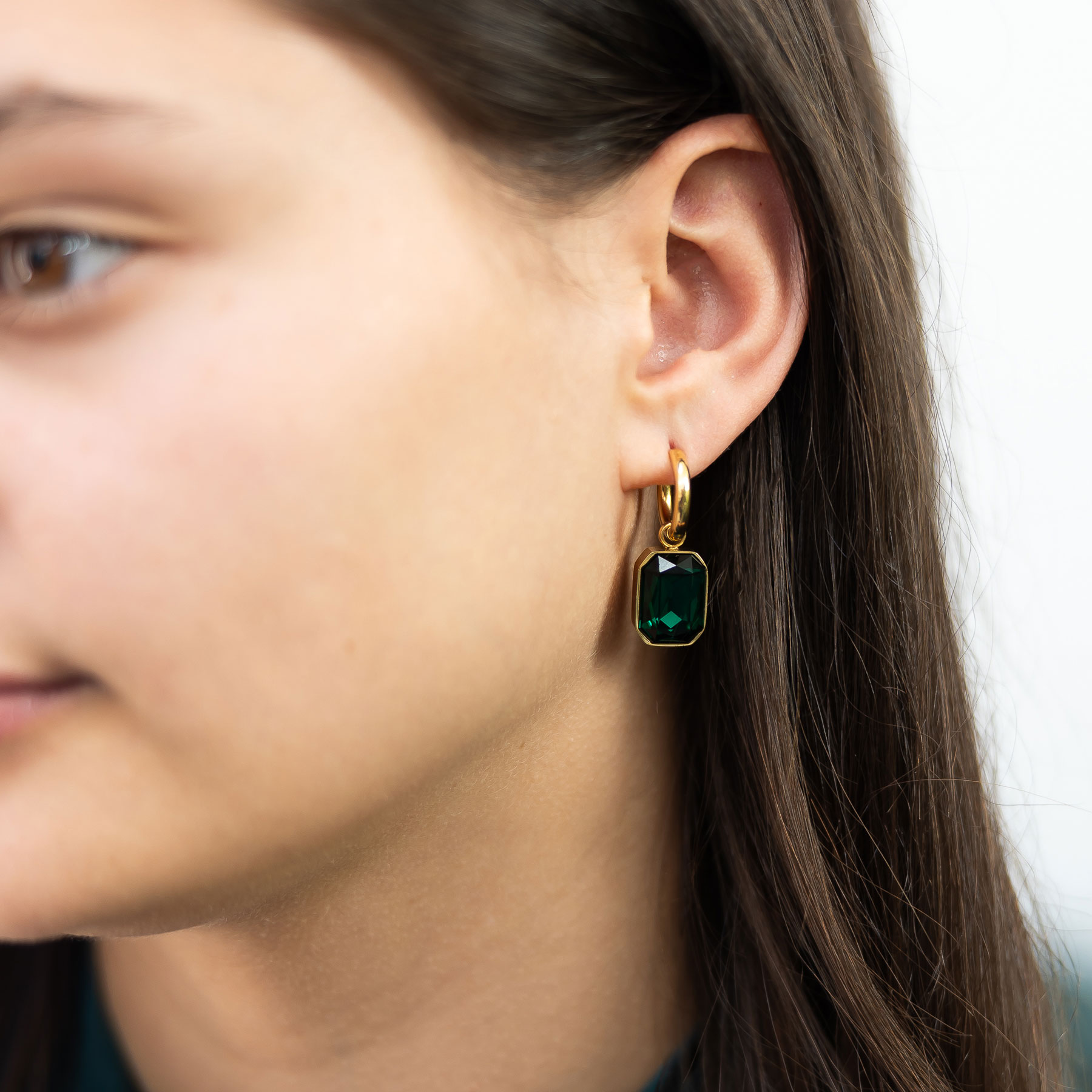 These gorgeous new faceted emerald green crystal glass earrings catch the light beautifully and are the perfect colour for the festive season. They would make a stunning gift or treat for yourself. They are also available in grey. The pendant is detachable so you can wear the hoops by themselves – perfect for a day to night transition.