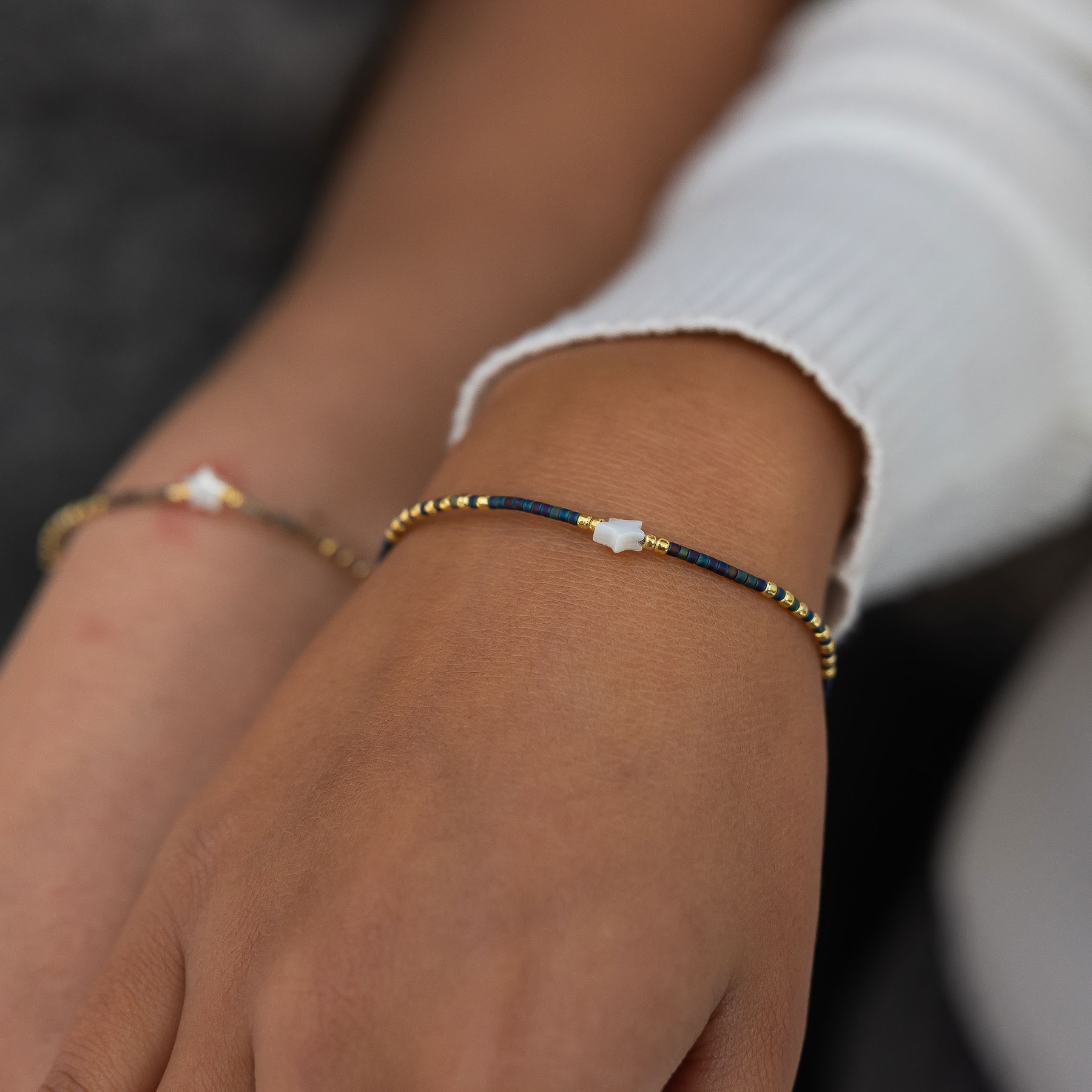 Perfect as a gift, this bracelet looks great on its own or stacked with other bracelets. The little star is perfect for the festive season. Just let us know by email if you’d prefer the brown or grey colour bracelet.