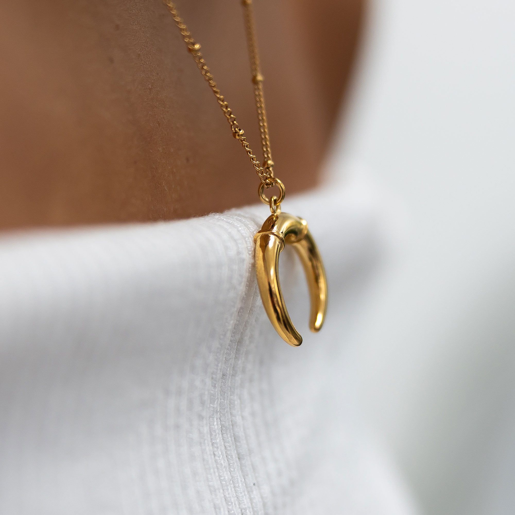 A lovely gold-tone necklace with a horn pendant.